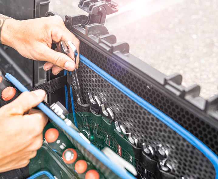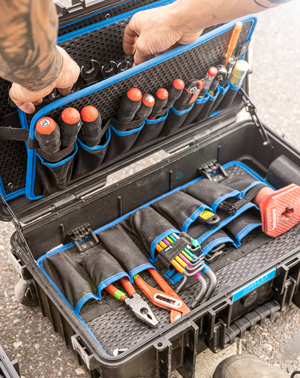 多米尼克·伯特依赖B&W工具箱来存放他的工具和防护设备。Jumbo 6600和Jumbo 6700满足了他对于储物空间的高要求,且轮子运行平稳,方便携带大量设备。
